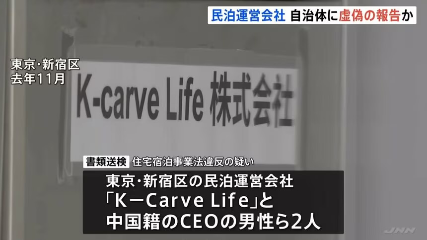 書類送検されたのは、東京・新宿区の民泊運営会社「K-Carve Life」と、この会社の中国籍のCEOの男性(34)ら2人です。