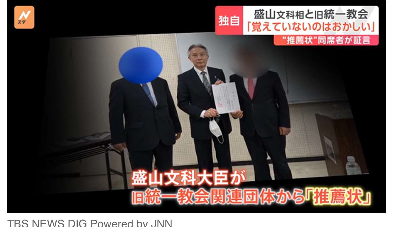 盛山文科相の妻に直撃「ラブレター受け取ったら好意を持っていると言える?」旧統一系教会機関誌 発送問題
